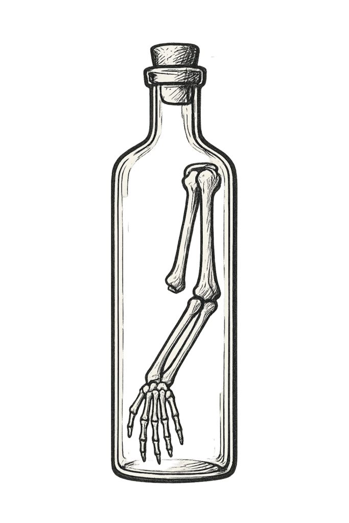 아침에 일어나서 이 이미지가 어떤 로직의 형상일까 생각해봤다 , 끔찍하거나 무서운 뼈조각이지만 , 그걸 어떻게 병안에 넣었을까를 생각해보면 , 곧 이건 일어나기 힘든 것을 상상해서 두려워한다는것이다라고 해도 되고 , 병안에 담겨있으니 그저 한 발치 떨어져서 관조해볼수 있는 상황이니 너무 지금의 스트레스의 가능성을 두려워 하지 말고 , 유리병안에 서 일어난 상황을 차분히 관찰하는정도의 기분으로 대처해 나가도 된다는 저기 내면의 어떤 목소리 일수 있겠다 하는 생각이다